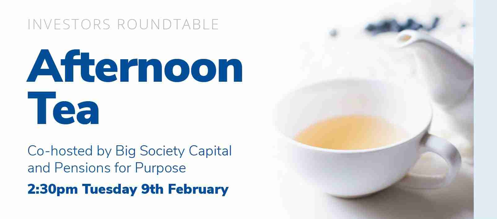 Can social and affordable housing deliver competitive financial and impact returns? As one of the UK's leading dedicated social impact investors, in this…9 February 2021 - Online afternoon tea - Big Society Capital and Pensions for Purpose
