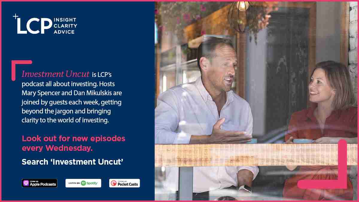 In this episode of the podcast 'Cutting through the noise', LCP speak to Karen Shackleton of Pensions for Purpose on impact investing.Investment Uncut - 'Impact with Karen Shackleton' - podcast - Pensions for Purpose and LCP